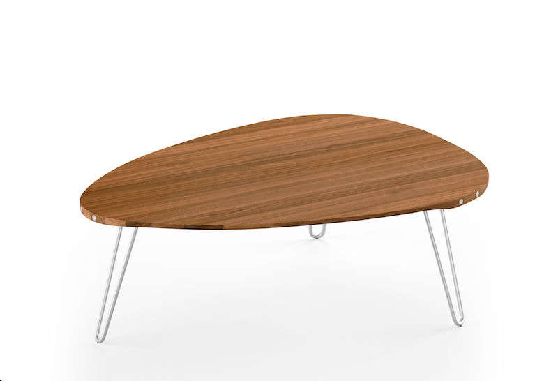 Sofabordet er lavet i en flot massiv olieret valnød, og benene er lavet i rustfri stål.