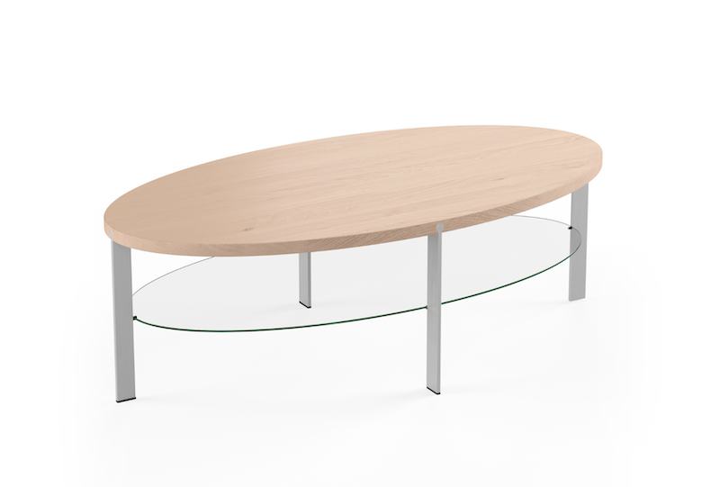 AK 972 sofabordet fra Naver er et lækkert ovalt sofabord, som har monteret en glashylde under bordpladen.