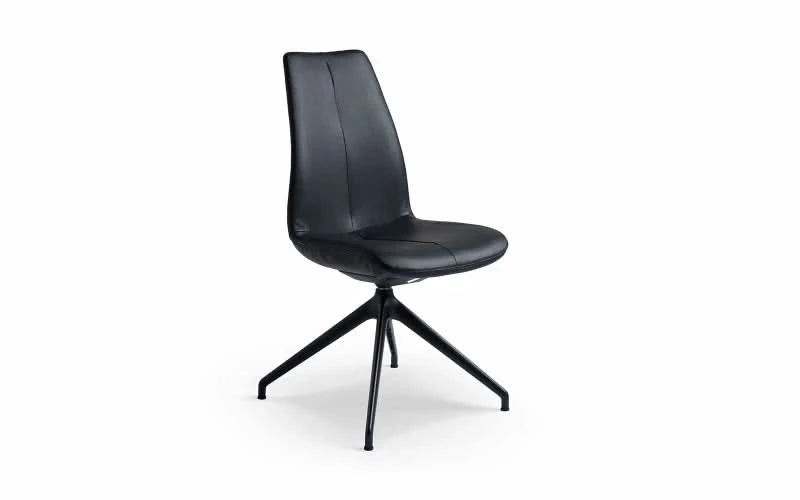 Det stilrene sæde gemmer på en ekstra detalje: en diskret vippefunktion, der giver kroppen naturlig bevægelighed og sikrer optimal ergonomi – selv når du sidder længe. Det sortlakerede stel er udstyret med returdrej, så stolen automatisk drejer tilbage på plads, når du rejser dig. En praktisk finesse, der samtidig giver et elegant og velordnet look omkring spisebordet.