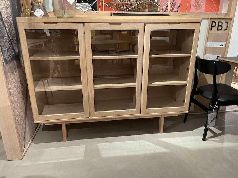 Asger vitrineskab fra PBJ Designhouse er lavet i eg hvidpigmenteret lak, og er udstyret med 3 låger.