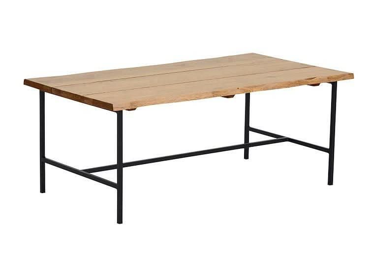 Sofabordet består af et sort metalstel, og 3 rustik egetræsplanker, som har naturlige kanter – hvilket giver bordet et rustikt look.