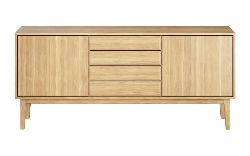 På lågerne har du et flot lameldesign, og som komplimentere de flotte 4 skuffer, som skænken er udstyret med.