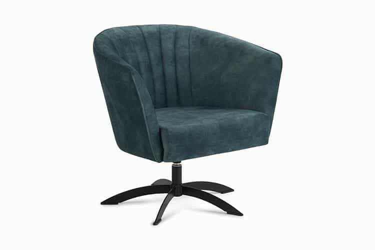 Cancun loungestol står her i en petroleumsfarvet velourstof i dessin Adore, som er meget slidstærk.