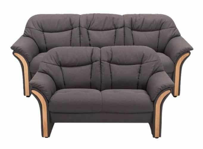 Chicago sofasæt ses her betrukket i dessin New Ocean som er et polyester stof.