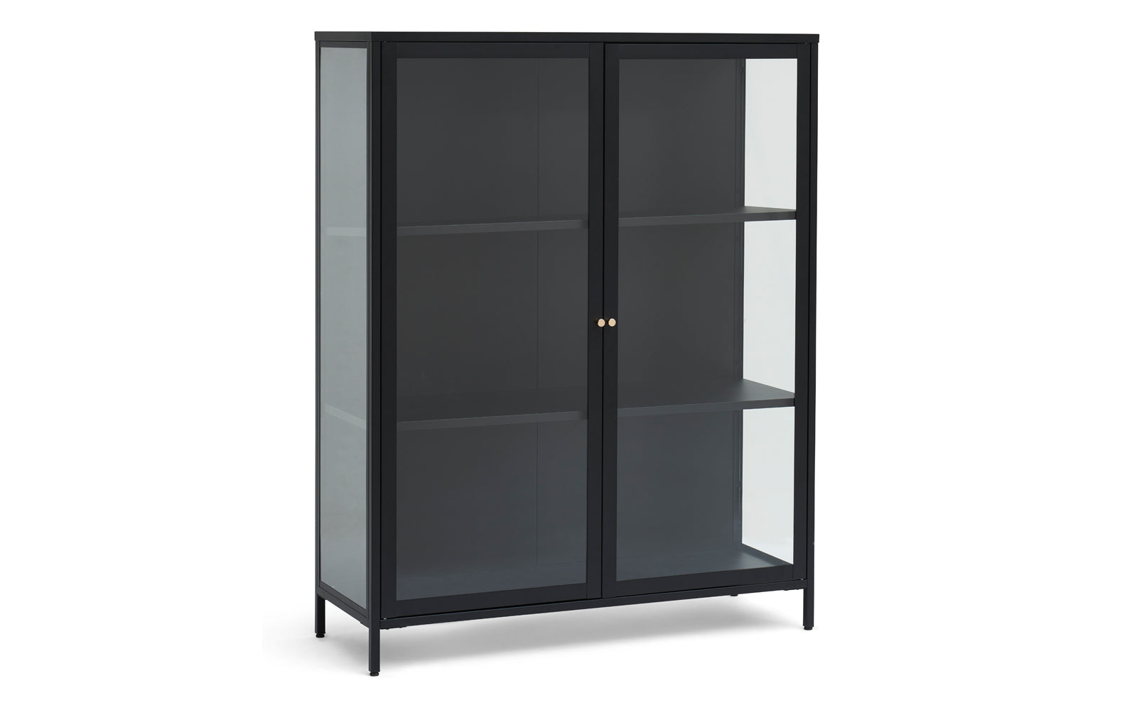 Como vitrineskabet kommer med to justerbare hylder, der gør det nemt at tilpasse opbevaringen efter dine behov. Med en bredde på 110 cm og en dybde på 40 cm har du rigelig plads til at udstille dine yndlingsgenstande. Det stilrene design i sort metal med glas og messingdetaljer gør Como til det ideelle valg, når du vil kombinere funktionalitet og elegance i hjemmet.