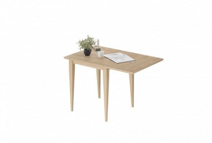 Når man slår klappen ud, bliver spisebordet 115 cm.