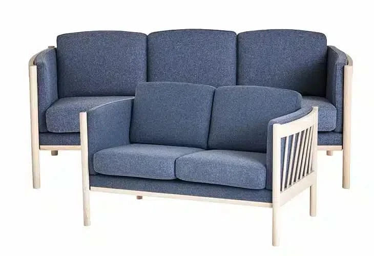 Fanø 2 og 3 pers. sofasæt ses her med et flot massivt bøgestel.