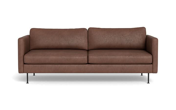 Det slanke armlæn tilføjer en stilfuld dimension til sofaen. Med et bredt spektrum af farvemuligheder i Houston-serien, præsenteres den her i et elegant Kentucky stof med 20% læder i.
