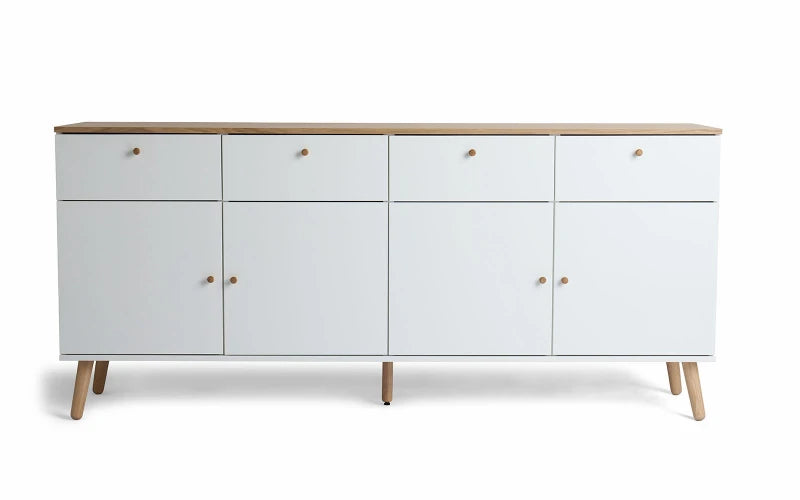 Hub skænk 1678 er et ideelt valg for dig, der ønsker et møbel med både funktionalitet og et elegant, roligt udtryk. De hvide fronter kombineret med smukke detaljer i egetræsfiner skaber et tidløst design, som passer perfekt ind i alt fra den moderne lejlighed til det stilfulde familiehjem.