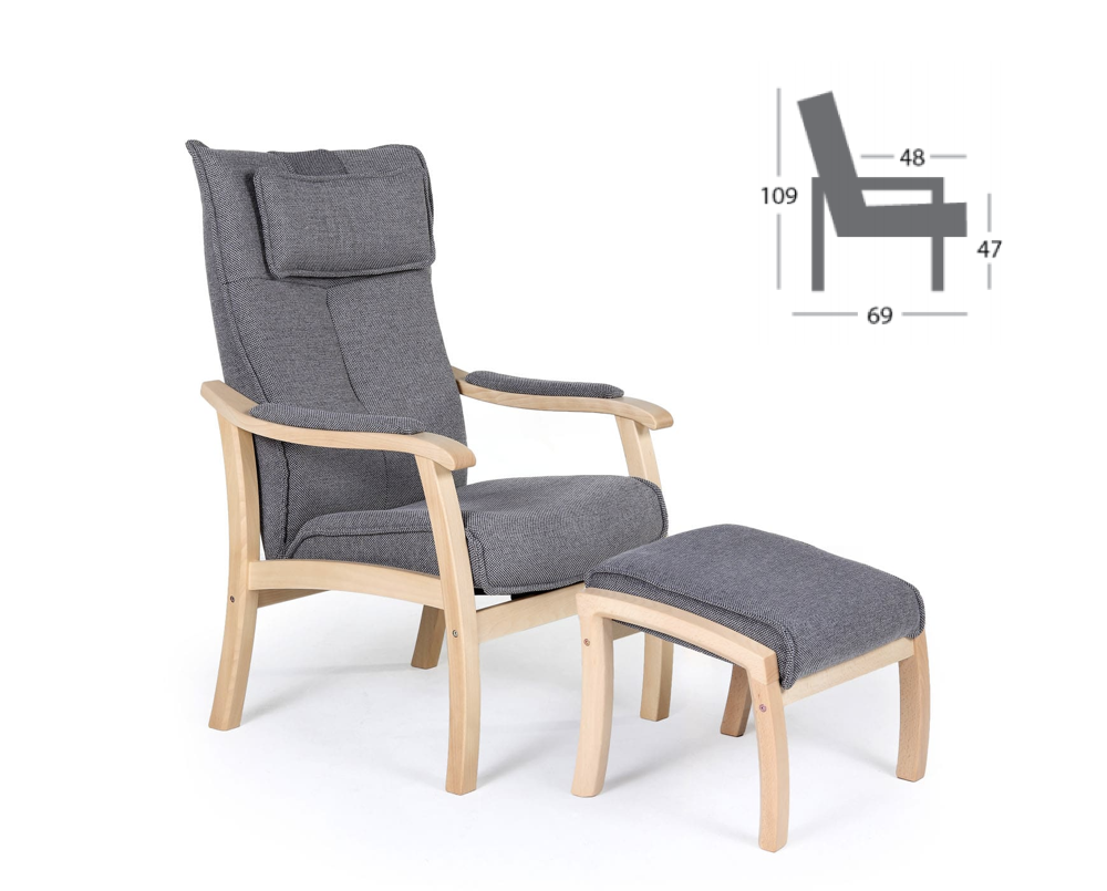 Løkken lænestol og skammel fra Nordic C er en perfekt hvilestol som kan læne sig tilbage.