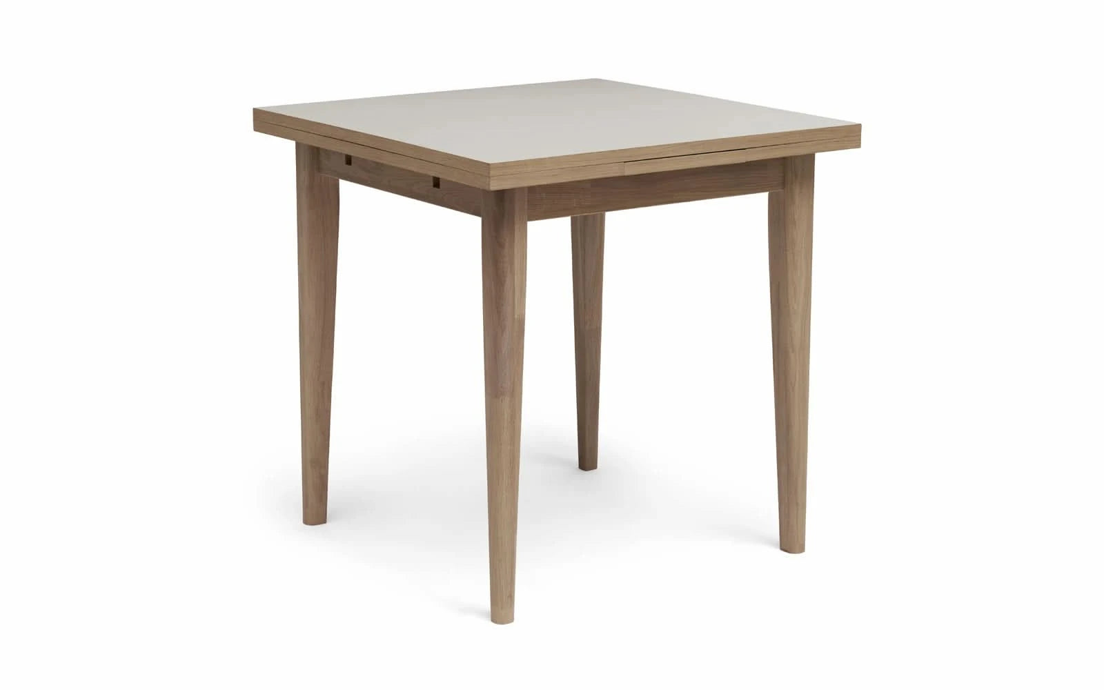 Uden udtræksplader er bordets længde 75 cm, men med begge plader trukket ud, bliver bordet 125 cm langt.