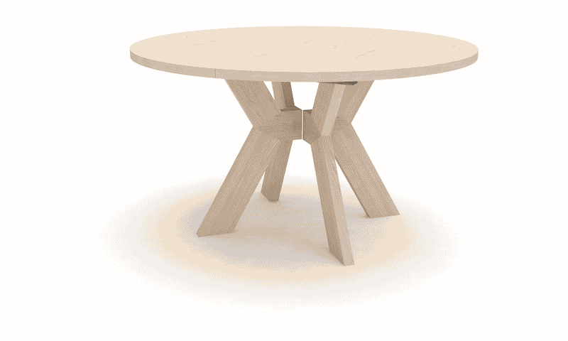 Spisebordet måler Ø120, og benene vender ind mod midten, så selvom spisebordet ikke er slået ud, kan der sidder 6 personer rundt om spisebordet.