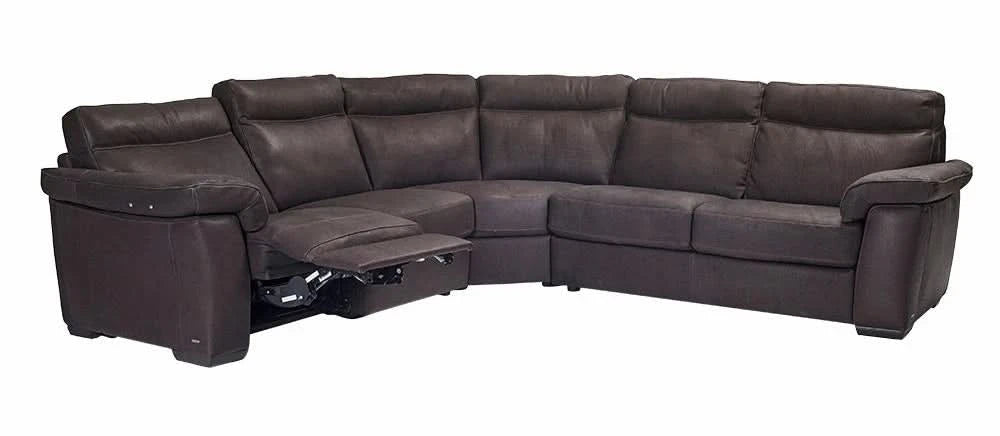Natuzzi Editions B757 hjørnesofa ses her i den lækre RE20-anilinlæder som er en brun og ren læder.