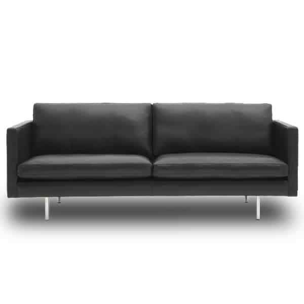Handy sofaen laves her som en 2,5 pers. sofa i en lækkert sort læder, og med smalle klassiske arme.