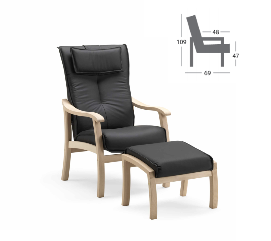 Skagen lænestol og skammel fra Nordic-C er et flot otiumsæt med en suveræn rygstøtte.