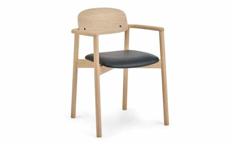 Stolen er fremstillet i massiv egetræ og fås med to forskellige overfladebehandlinger: naturolie og hvidolie. Sædet er polstret med sort CC læder, og rygbetrækket, som kan tilkøbes, er udført i samme kvalitetslæder for et harmonisk look.