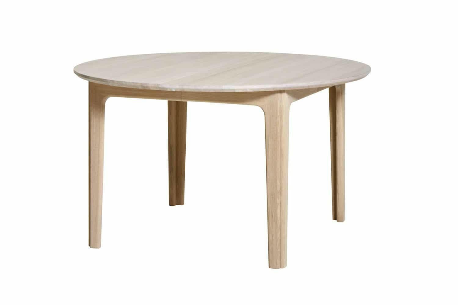 SM112 bordet fra Skovby, er et fantastisk rundt spisebord, hvor man har mulighed for at forlænge det med tillægsplader. Bordet er normalt Ø130, men med to tillægsplader, bliver bordet 230 cm. På billedet står bordet i en eg hvidolie, hvor der er to inkluderet tillægsplader med. Bordet har ikke magasin, så man skal opbevare tillægspladerne ved siden af.