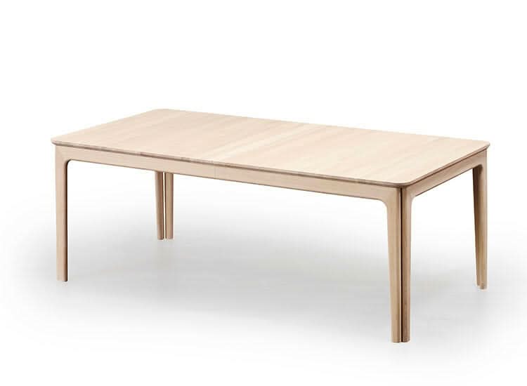 Spisebordets bordplade og understel er udført i massivt egetræ og kan vælges i enten en hvidolie- eller naturolieret behandling.