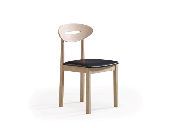 Spisebordsstolen står i en flot hvidolie, og er monteret med en pæn okselæder.