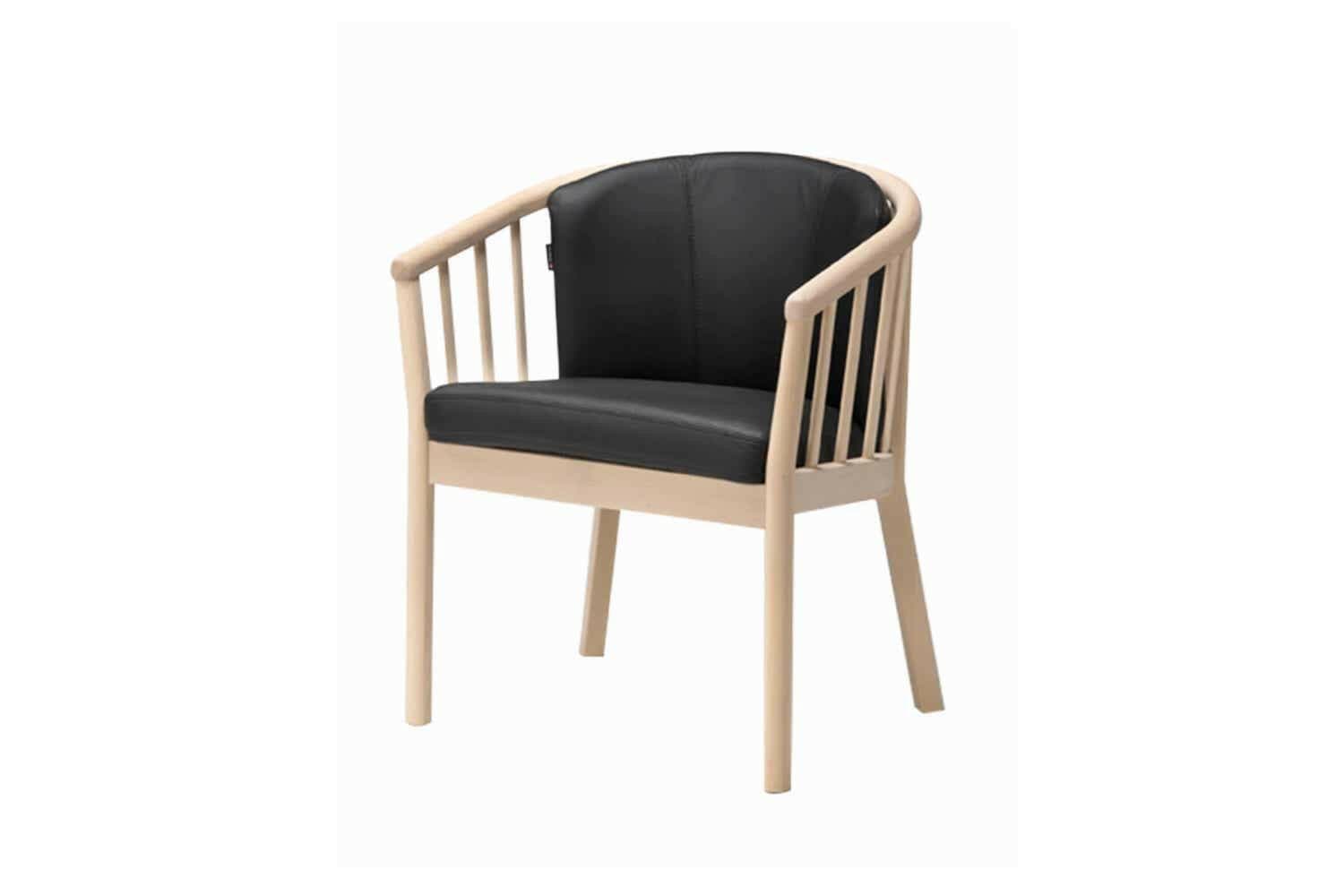 Sonet armstol fra Skalma, er et typisk flot stykke dansk design, hvor man ser en flot stol med en rund ryg, og tremmer i siden.
