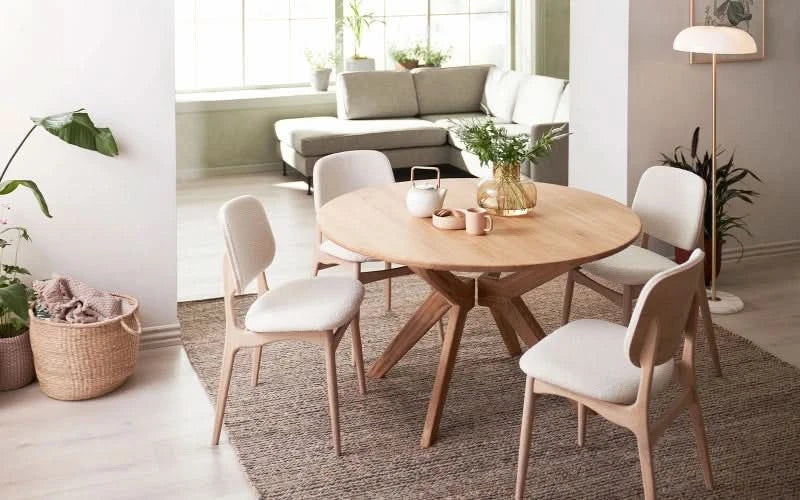 Stella spisebordets ben er smart placeret under bordet, hvilket eliminerer behovet for, at nogen skal sidde overfor et bordben.