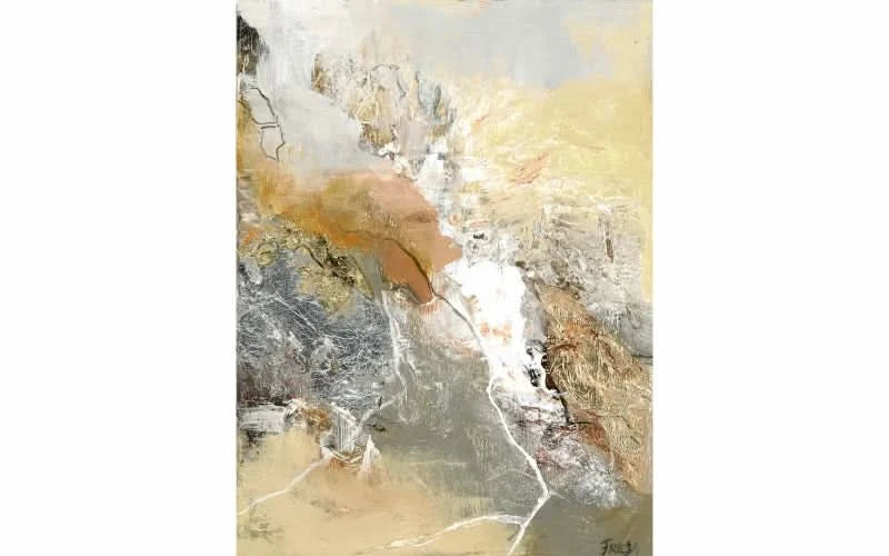 Mixed media kunstværk skabt med en smuk kombination af lyse og varme nuancer. Dette billede har dimensionerne 90 x 120 cm og udstråler enkelhed og stil i sit udtryk. Både størrelsen og motivet giver mulighed for at vende det efter behag, afhængigt af hvordan maleriet bedst integreres i indretningen.