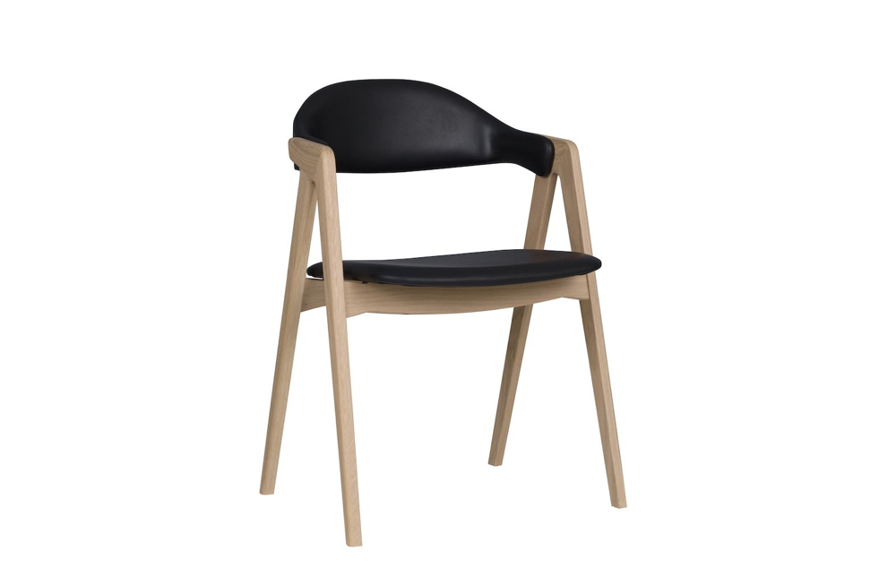 Titan spisebordsstol fra PBJ ses her i en lys eg, og en seminailin læder på sæde og ryg.