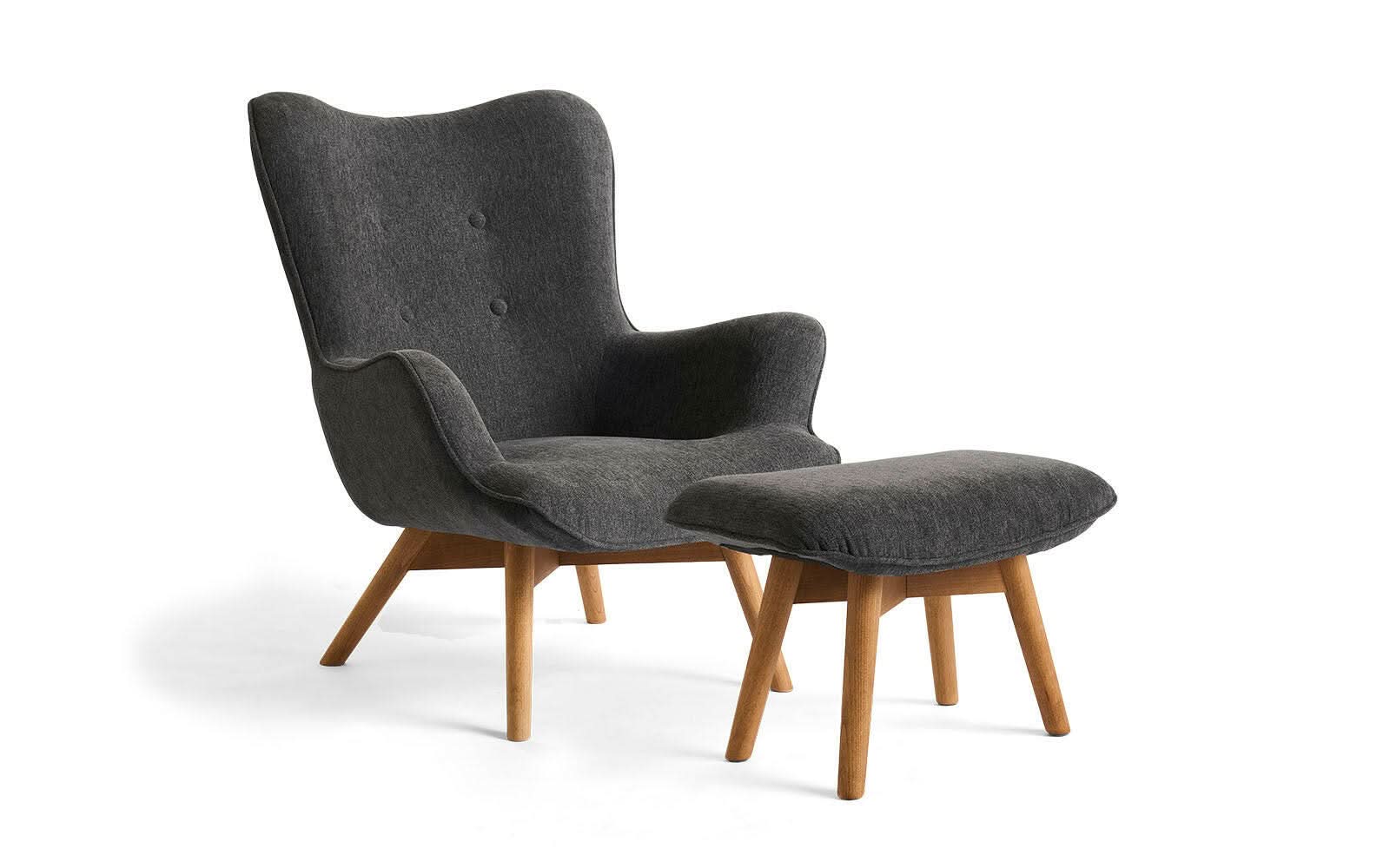 Twist lænestol og fodskammel tilføjer lidt retrostil til dit hjem.
