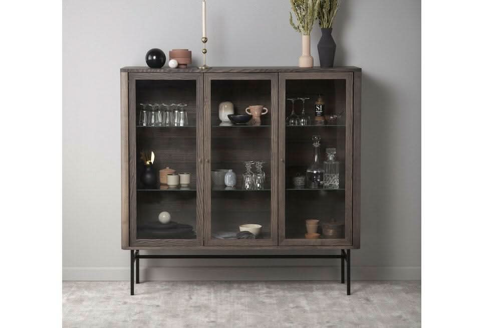 Selve benene er i sort stål, som har en god højde, og får vitrinen til at se let ud.