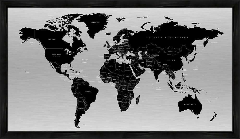Verdenskort i metalprint, er både pæn kunst til væggen, men giver også anledning til et godt samtaleemne.