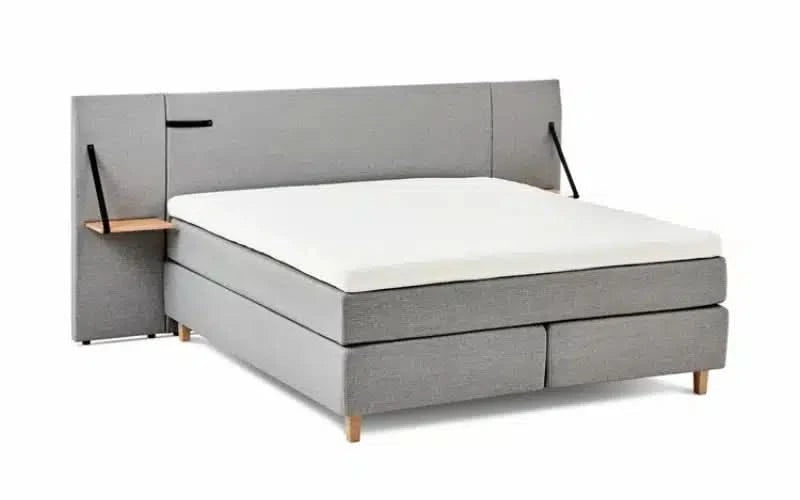 Sengen er betrukket med kraftigt møbeltekstil i smukke nuancer, hvor du kan vælge mellem antracit, lysegrå, eller beige.